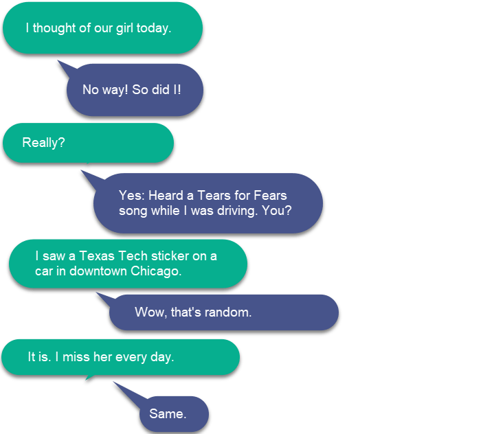 Kimberly keeps a letter in Patrick’s handwriting. It says, “I love you forever and always.” That phrase, in Patrick’s hand, would become a tattoo. Alex’s fingerprint is memorialized as a tattoo on Kimberly’s wrist. When she got that tattoo, Alex’s girlfriend came along. When she got the memorial tattoo for Patrick, Alex got one, too.